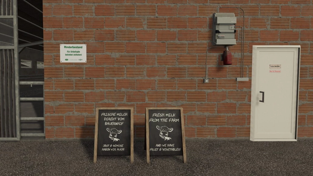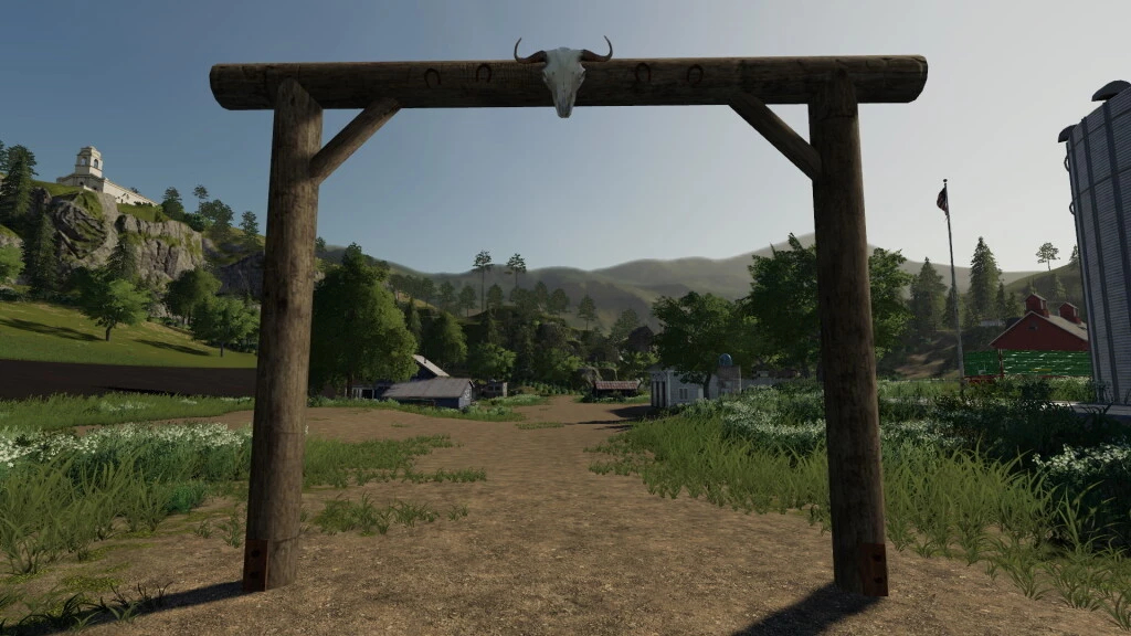A placeable ranch styled farm gate. Decorated with a cow’s skull and horseshoe. Price: 2.500 €