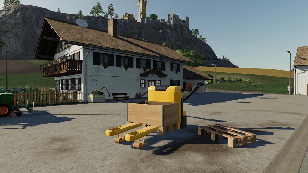 This mod package also includes a pallet with tension belts to load objects such as small logs.