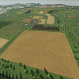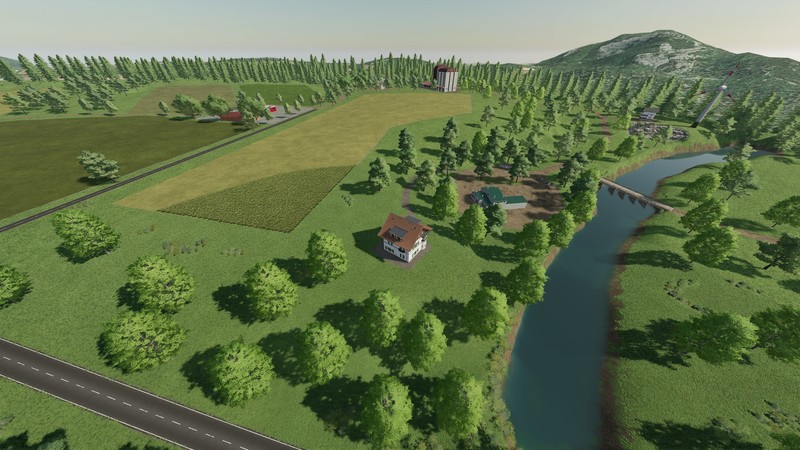 This is a fictional map. There are medium-large fields. A large forest area for forestry work.