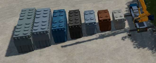 This is a pack of different electrical transformers that can be used as loads on trucks and for cranes to lift. The number before the first period is the weight in metric tons and the numbers after that are the width in meters.