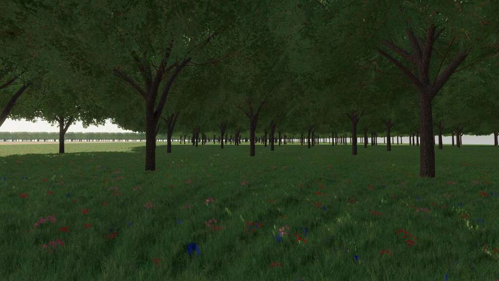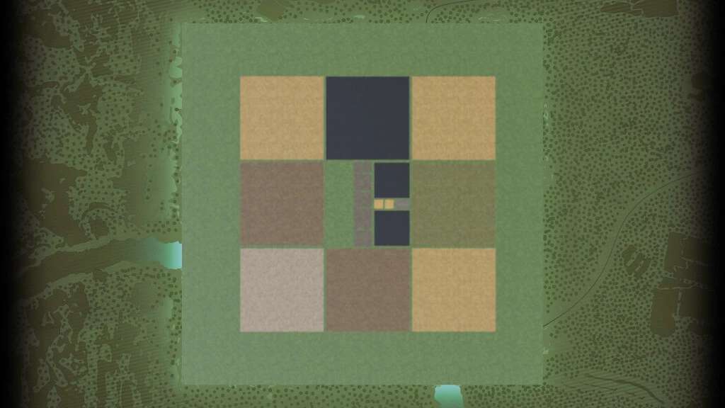 Contains a total of 12 fields ranging from small to massive, with a forest surrounding the entire map