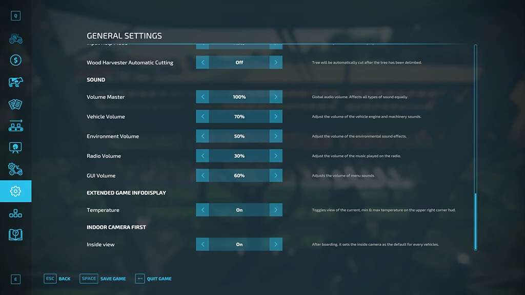 After starting the game, it will automatically create a folder called [..]/modSettings/FS22_gameplay_IndoorCamFirst/, if it has not been created yet, create it.