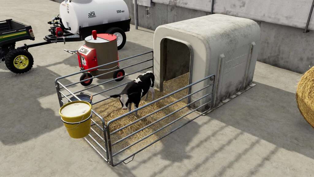 Mod “More Animal Enclosures Possible (64)” (by modelleicher / Farming Agency) is recommended to use with this mod, so you are able to build multiple calf huts.