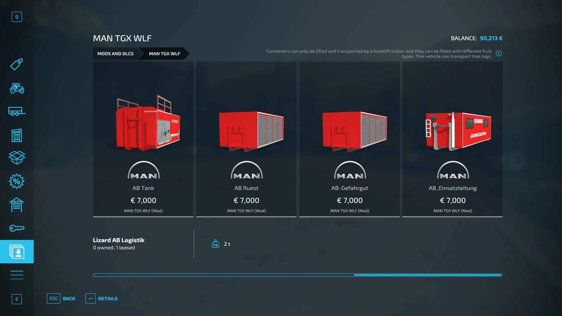 The MAN WLF Mittelberg in Farming Simulator 22 is a specialized truck designed for versatile operations around the farm. This vehicle is equipped with a hooklift system, allowing it to pick up and transport a variety of containers and modules. This feature is particularly useful for moving silage containers, animal feed, and other heavy materials, making the truck highly adaptable for different tasks.