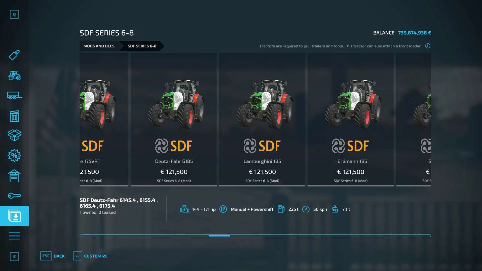 A tractor pack of the SDF tractor tank with the brands Deutz-Fahr, Lamborghini, Hürlimann and Same from 145 to 280 hp.