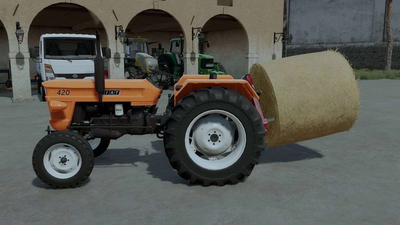 it is designed for not-too-big bales and pallets.
