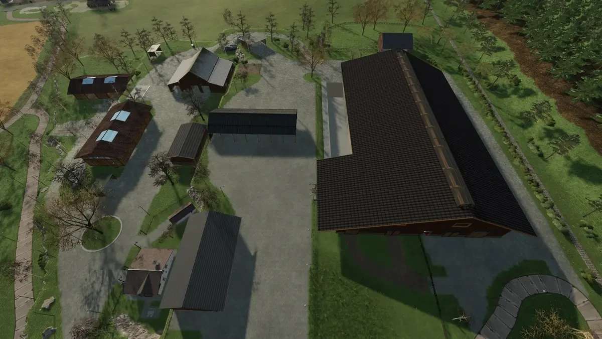 The map contains 94 fields on which multi-crop (alfalfa, carrots, clover, hemp, lavender, spelt, millet, onion, poppy, red cabbage, white cabbage, rye, tobacco, triticale, hops) can be grown. The new animal system (FS22_EnhancedAnimalSystem) has also been installed, and there are also over 50 productions with more than 100 different products. There are 4 permanently built courtyards and enough building space for new ones. 64 ground angles are also present as well as precision farming. In the shop under the trailer and miscellaneous category you will find a Krone aluminum plane for pallets that reduces the performance of the pallets and in the trailer and animal husbandry category there are 2 barrels that can load all liquids, harvest for tobacco and hemp are also included.