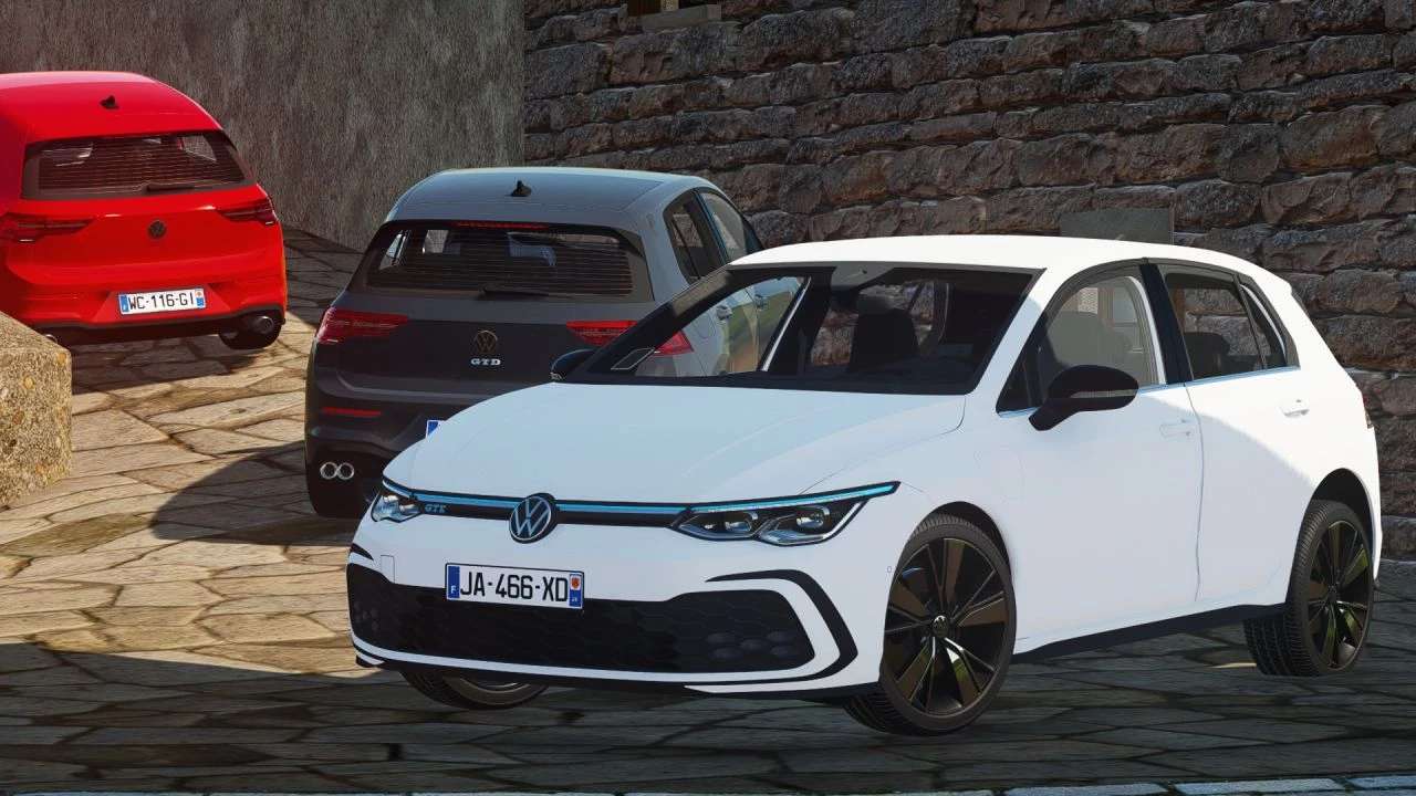 Volkswagen Golf 8 GTE. The GTE is the Hybrid version of the GTI with a thermal engine and an electric which combine to produce a power of 245 hp (power equal to the GTI). in the games it is thermal without its engine at start-up to make it sound like a hybrid car, because in the games you cannot have two different fuels on a single vehicle