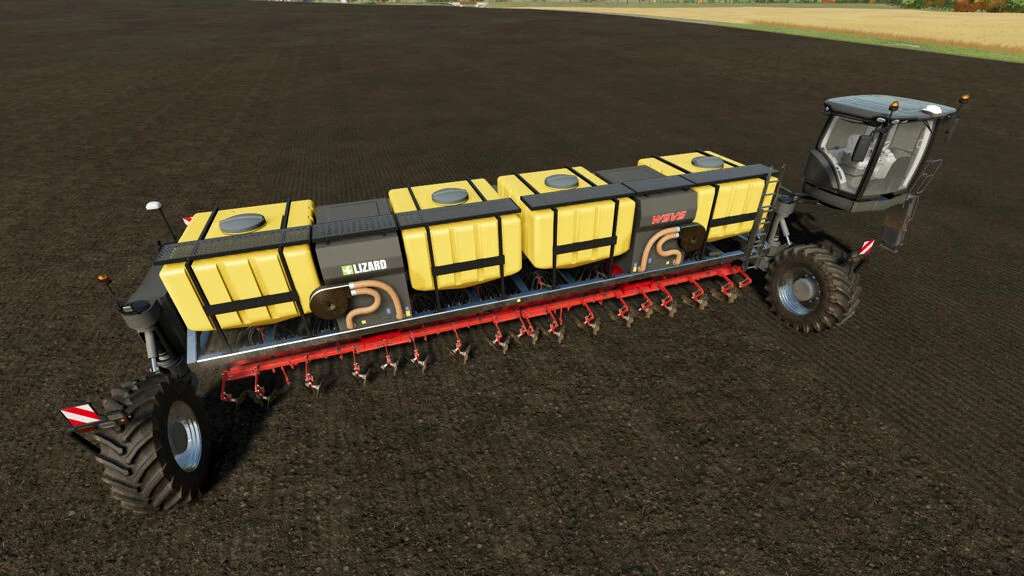 This is the Seeder module for the Lizard Wide-Span Vehicle System (WSVS). This implement operates like a standard Seeder when attached to the WSVS Tractor. This Seeder can be used without any prior soil cultivation.