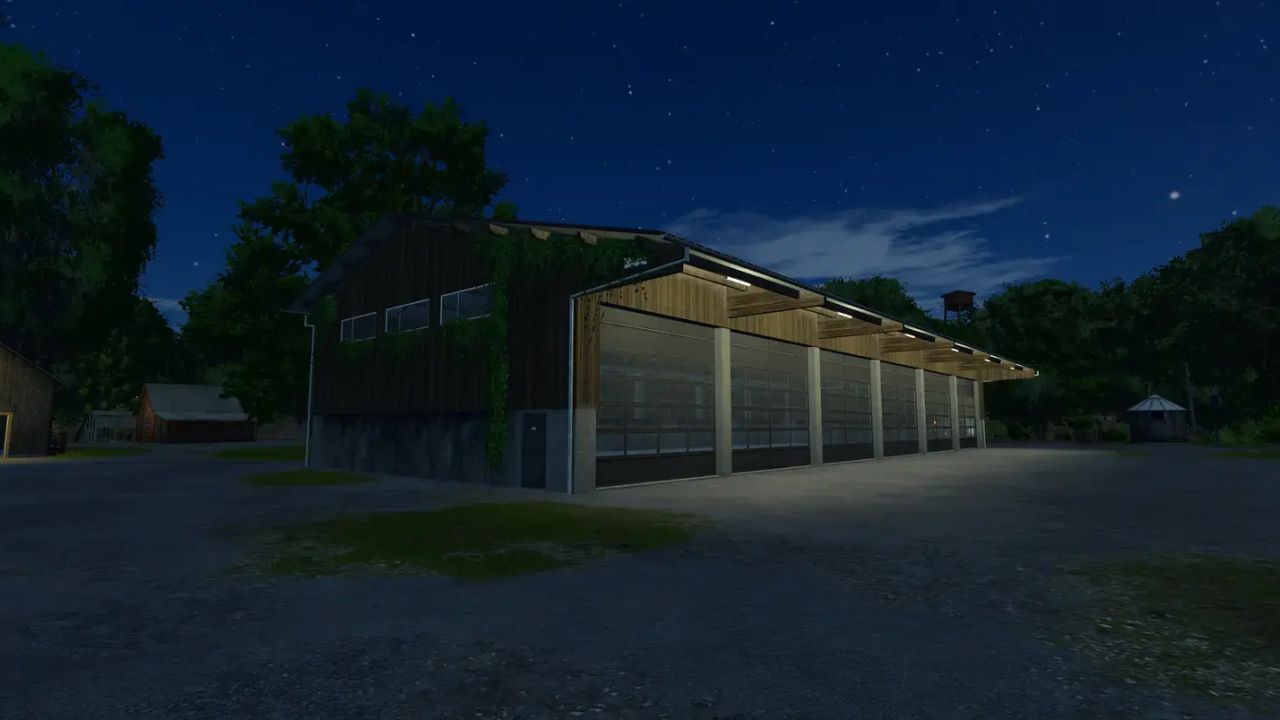 FS25 6 bay wooden shed with solar panels v1.0.0.0