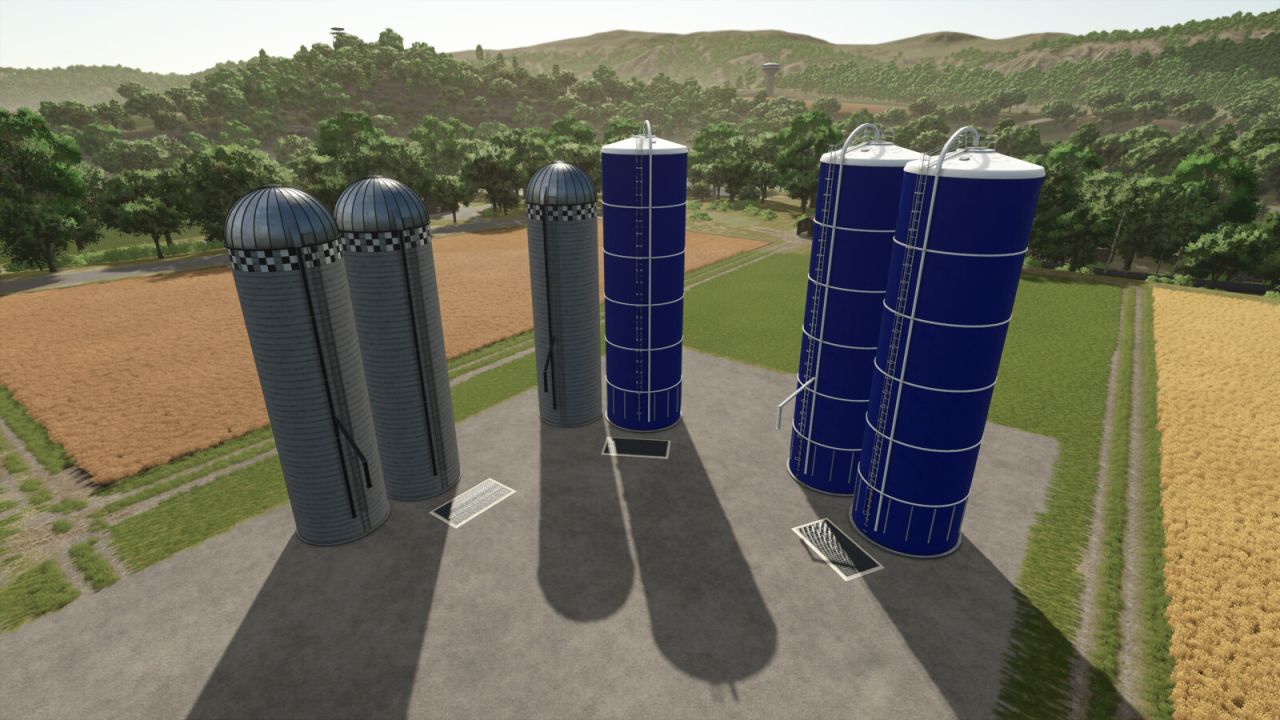 A pack of 3 unique layouts of American multifruit silos. These silos have the ability to accept bales and pallets directly.