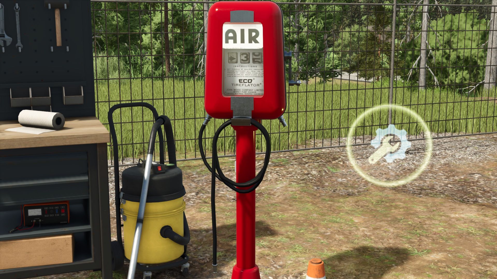 You can use the Z button to show or hide warning strips and icons as long as you are in the correct trigger zone. The workbench lighting can be turned on and off using the R button.