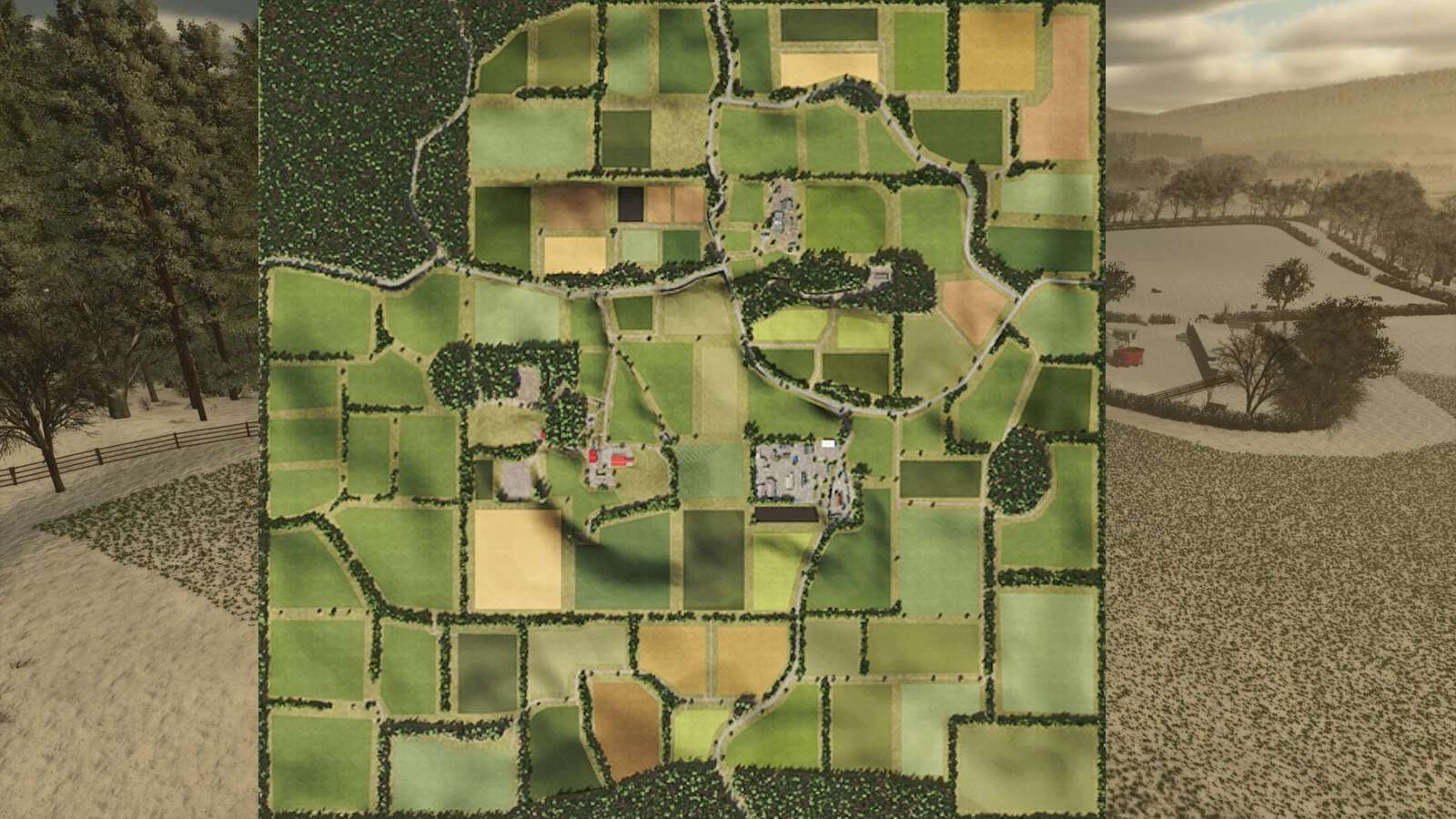 – Two Working Farms, one which has the Grain Silo located at. Two Forestry Areas around the map.