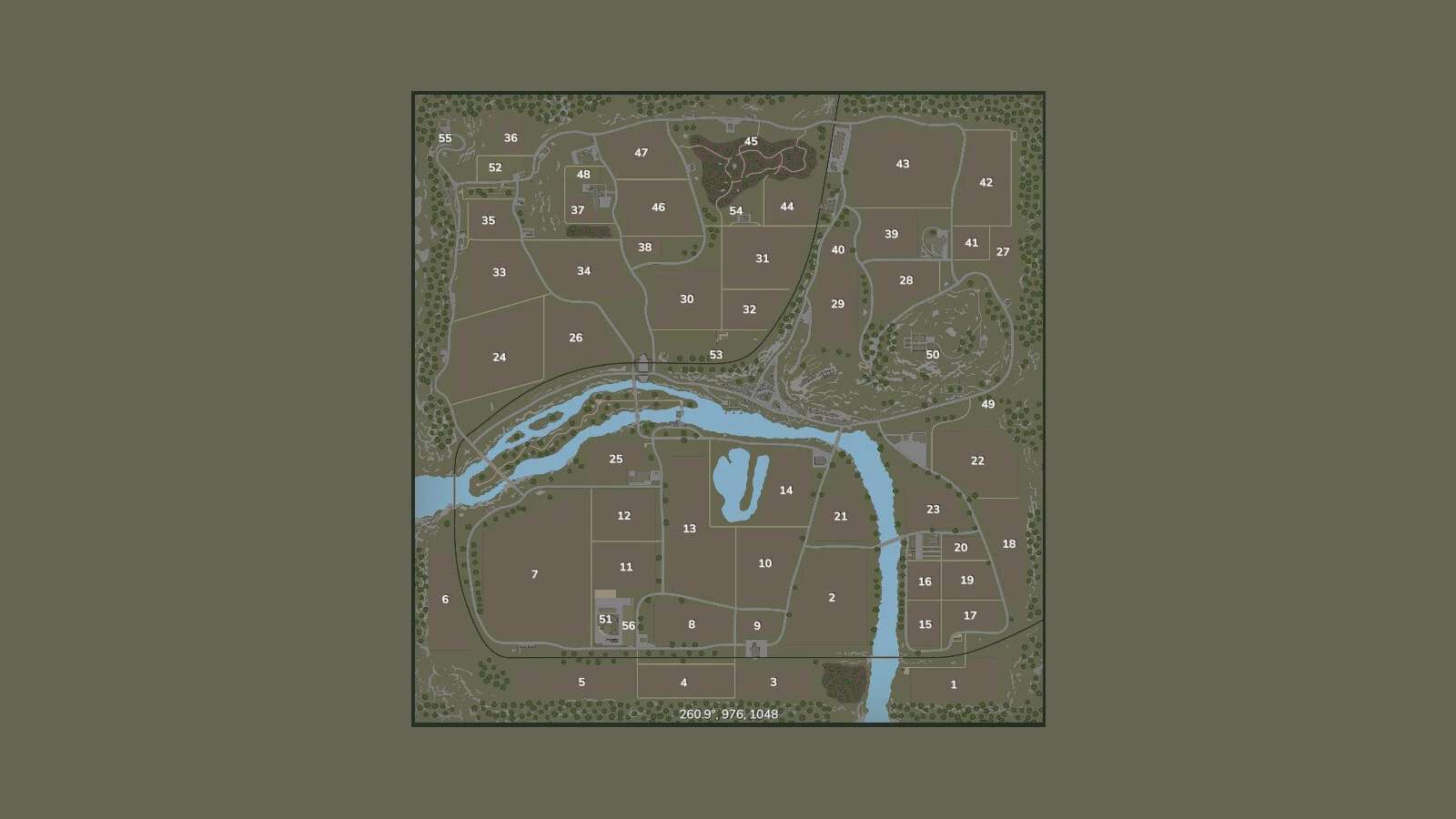 There are a total of 56 fields that can be bought, including 1 forest.