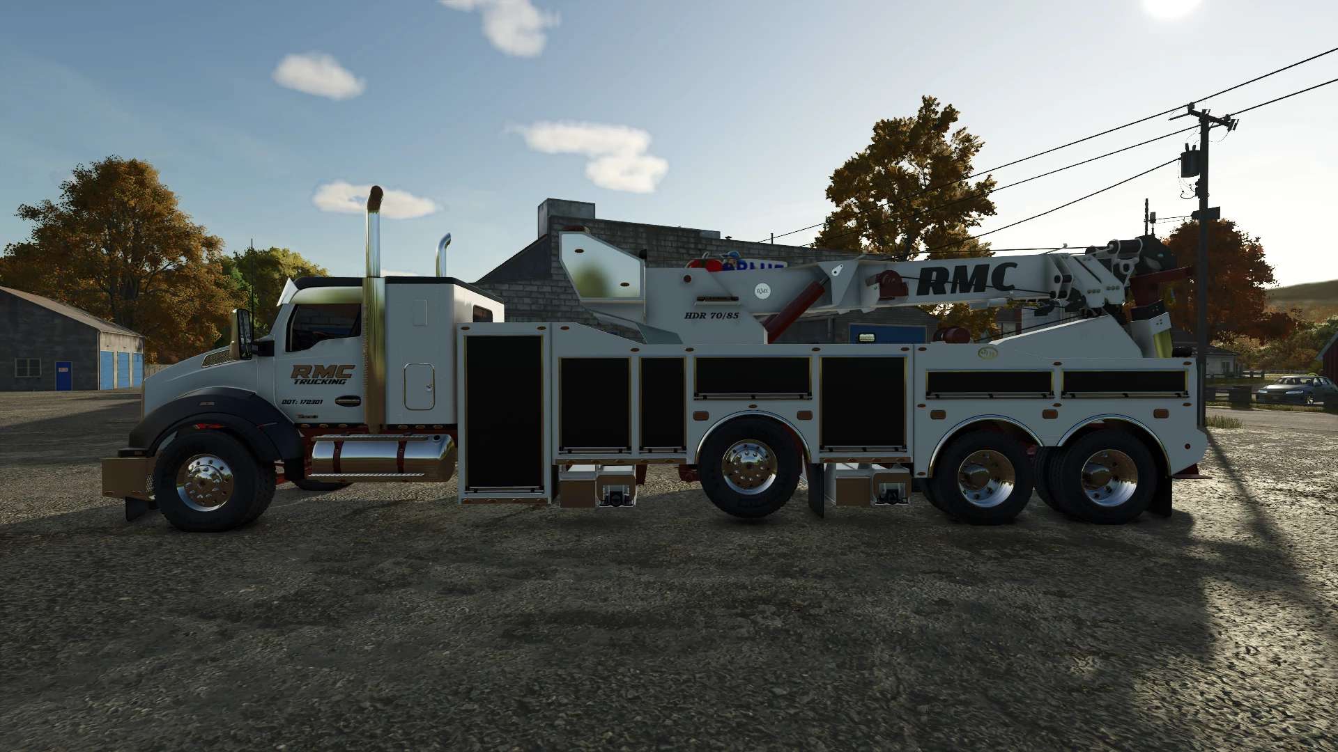 T880 Rotator with color selection for main paint, two tone and chrome. 3 control group selections for outriggers, main boom and rear tow arm. 5 winches with triggers on either side of the bed located at the lift axles for the front boom winches, rear sides of bed for end boom winches and rear of bed for rear arm winch. The rear arm has a tension belt or your mod can have a trailer, trailerLow, trailerCar, semitrailer, semitrailerCar. Adding an attacher to vehicles to tow allows the brake force to be reduced for better towing.