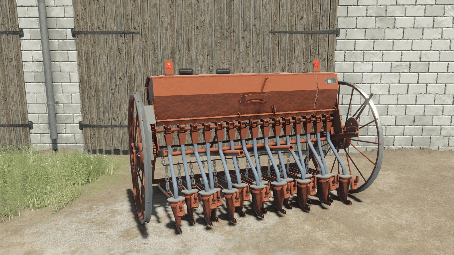 Old Polish horse-drawn seeder converted to 3-point hitch.