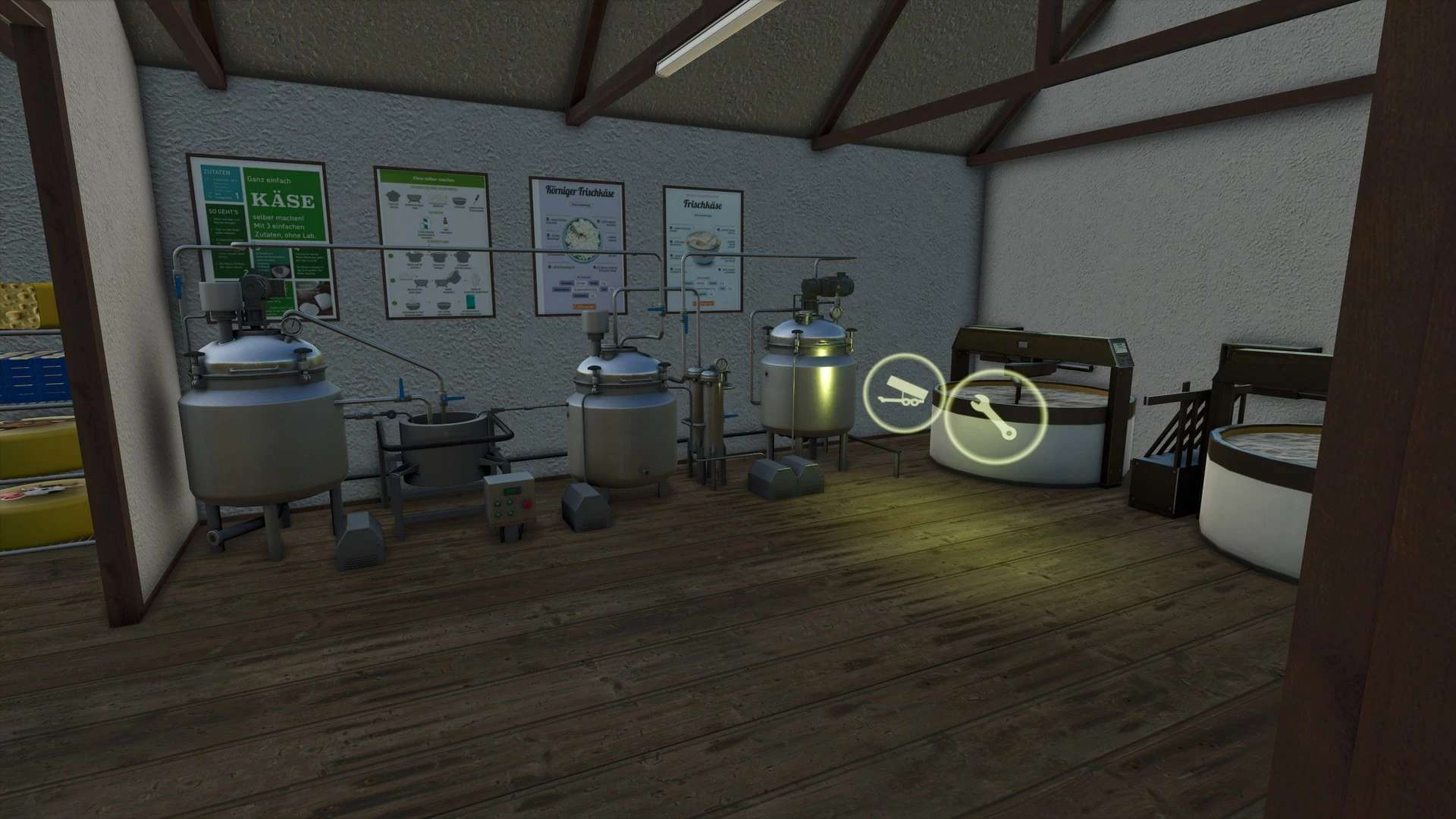 A small, artisanal cheese factory with a focus on micromanagement. Production relies on small pallets that are compact enough to be carried by hand. This maintains the character of a small-scale farm production – no large industrial pallets.