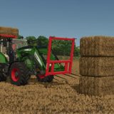 The bale spike can be attached on 3 points, frontloader, telehandler or wheel loader. The attachment changes according to the loader used. The configuration allows you to remove the spike collisions to lock the straw bales in place for easier handling. (Tension belt system) The bale spike can be extended with a mouse-click (3 positions).