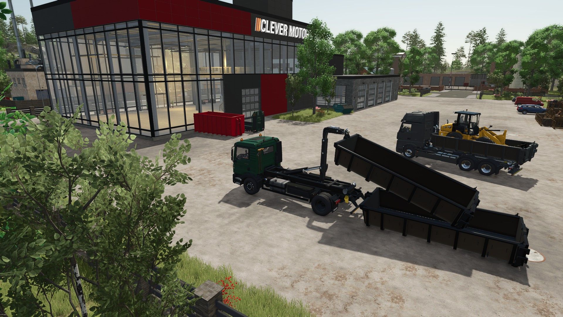 The container has a foldable rake that can be folded down via IC and the doors can also be opened from the vehicle
