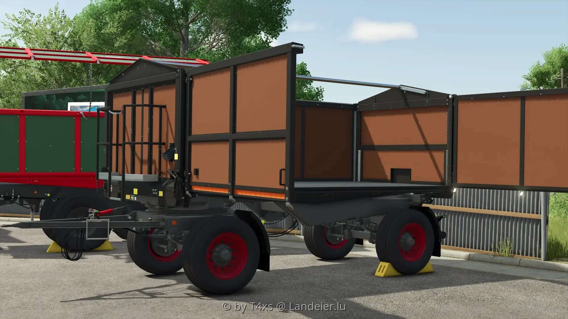The set consists of three trailers that have been expanded to include the option of opening the left side in order to load bales and pallets.