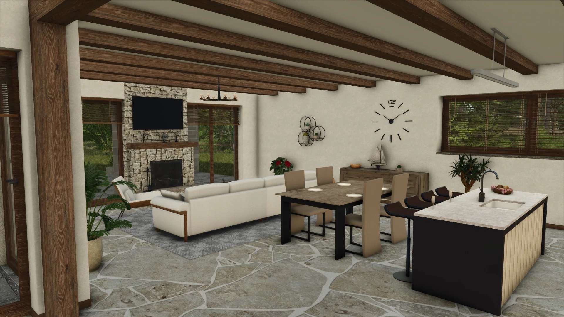 The house features: