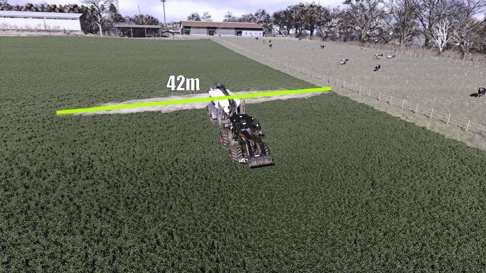 Working width: 15m-42m (lime spreading was extended from 15m to 42m with intermediate width changes)