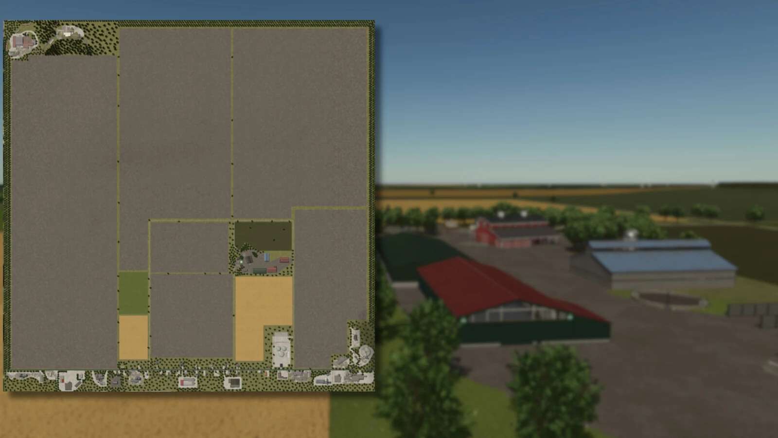 This is a fictional map where you can do farming, forestry and animal husbandry, which is beautiful, and the fields are very large.