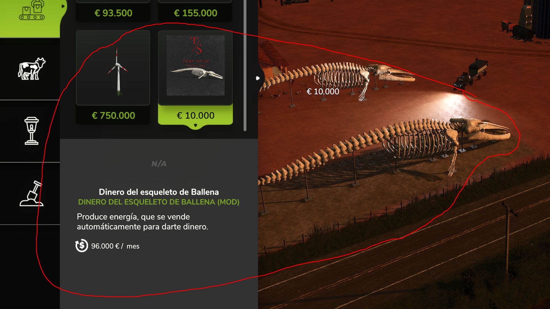 It is a decorative sculpture that represents a whale skeleton, ideal to add a unique and atmospheric touch, perfect for giving personality and character to the map environment, it has been modified by my tonysolis to be a decorative feet and also a generator for passive production purposes which depends on the month will generate you from 80 thousand to 105 thousand euros !!! giving you a margin of 3500 to 4000 euros per day without doing absolutely nothing ideal for passive income in a single investment !!!