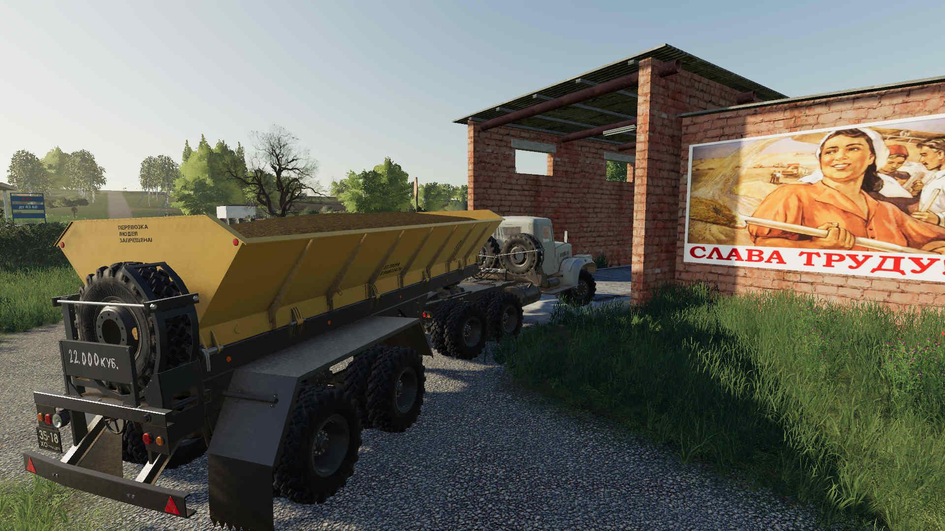 Correction of physics. Fixed wheels. Minor changes in XML. Added a semitrailer fuel tanker: 22000 liters. Added a semitrailer tank for water: 22000 liters. Added a dump semi-trailer: 22000 liters. Added a grain semitrailer: 60000 liters.