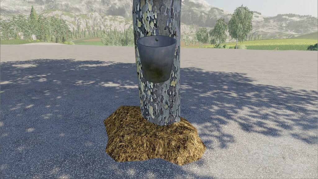 As soon as you add water, a bucket ist visible at the trunk of the maple tree, that ist so typical for maple syrup trees.