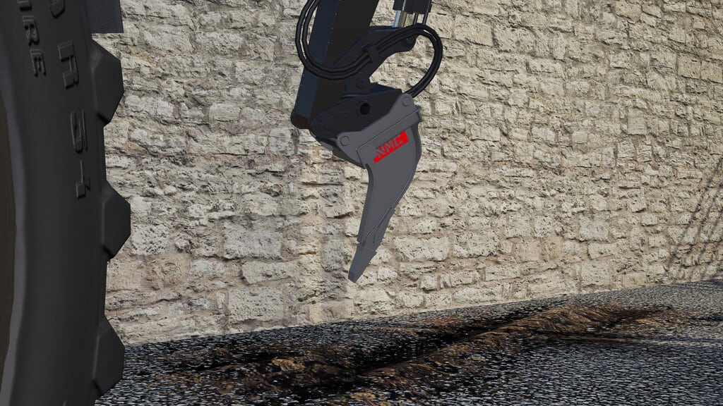 The NMC Ripper is a single tooth ripper built to work with the Huddig 1260E. In real life they would use this ripper to rip up the ground. In the game it can be used to plow the ground.