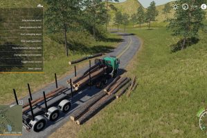 This is 12m log trailer with autoload wood script (orig author Marhu). It has large space between forks, so it can be loaded by whell loader or big arm loader.