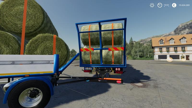 Trailer 3 axle with platform for bale and pallet for Scania S580 truck