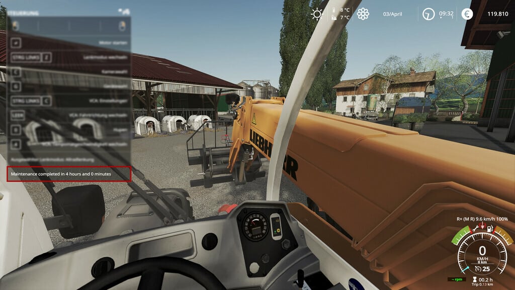 If the maintenance time is less, fewer engine hours/days will be added (Real example: Like a small oil change). Thus, if necessary, in the harvesting season, you can plan exactly when to put your vehicle in maintenance and when you need it. The FS19 damage system has been adapted so that the vehicle is completely damaged when it reaches “maintenance required” and can only be repaired by maintenance.