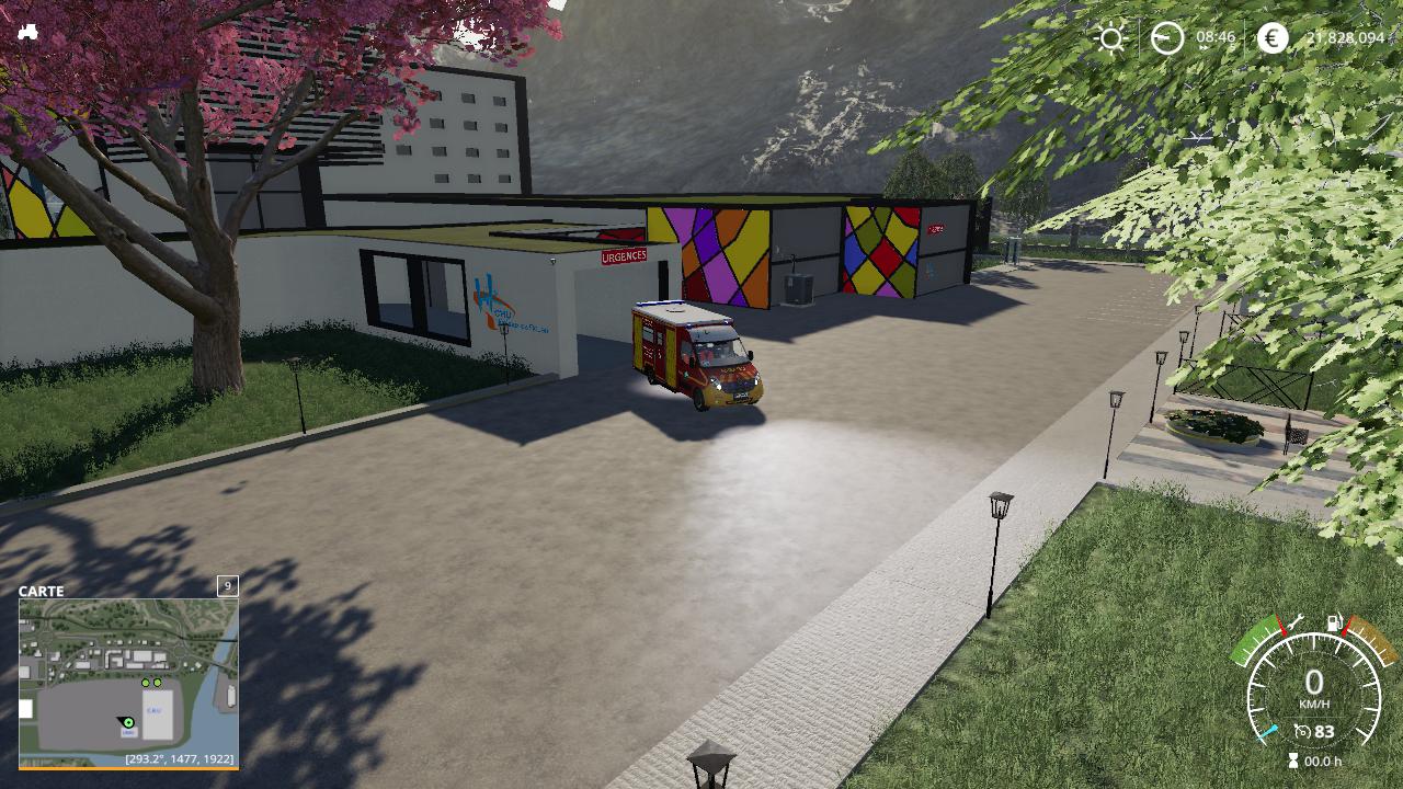Wide free meadows border the new river. A hospital, a fire station, a gendarmerie and a sports complex complete the facilities of a classic French city, finally you have a large area for placing buildings.